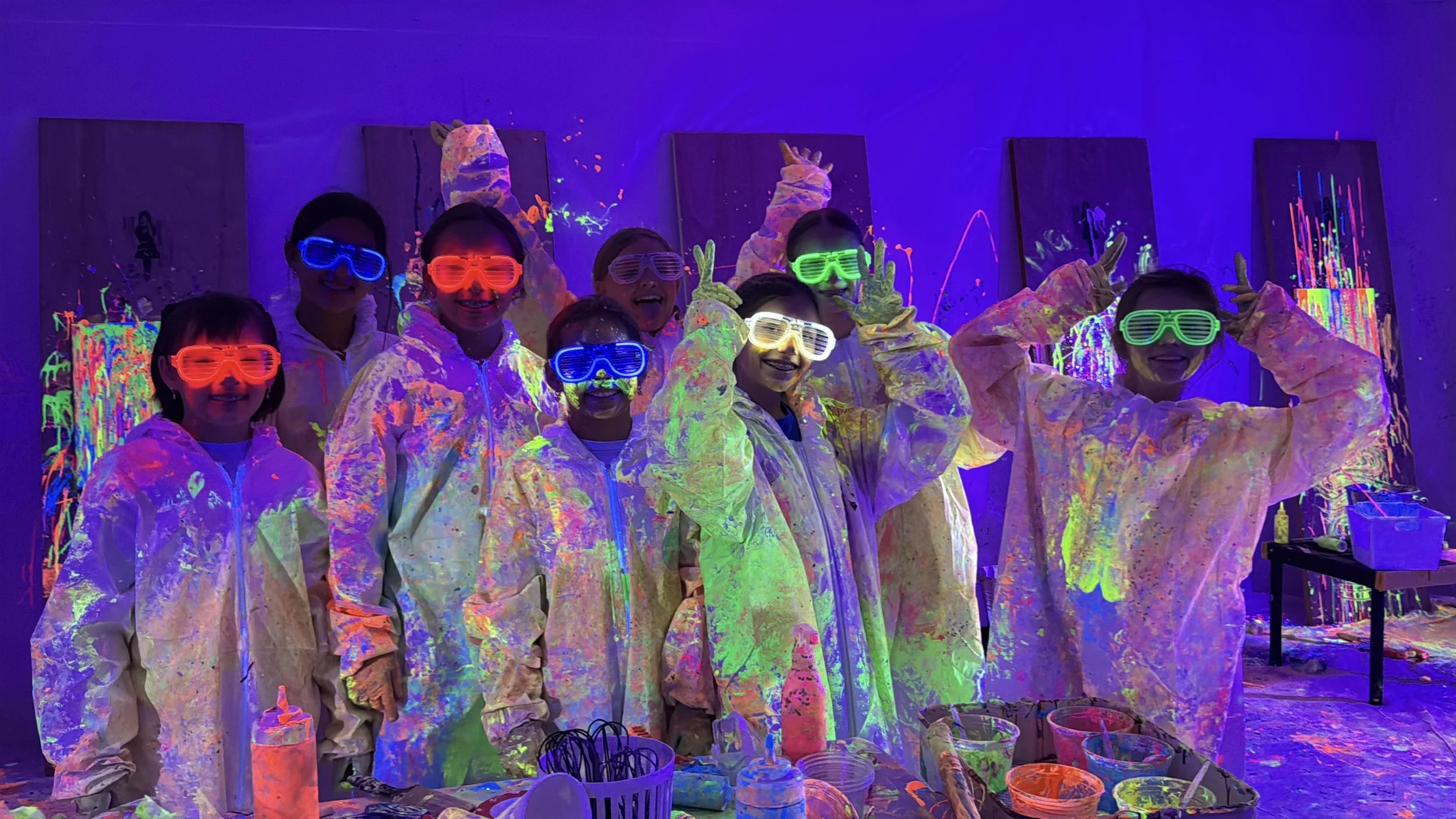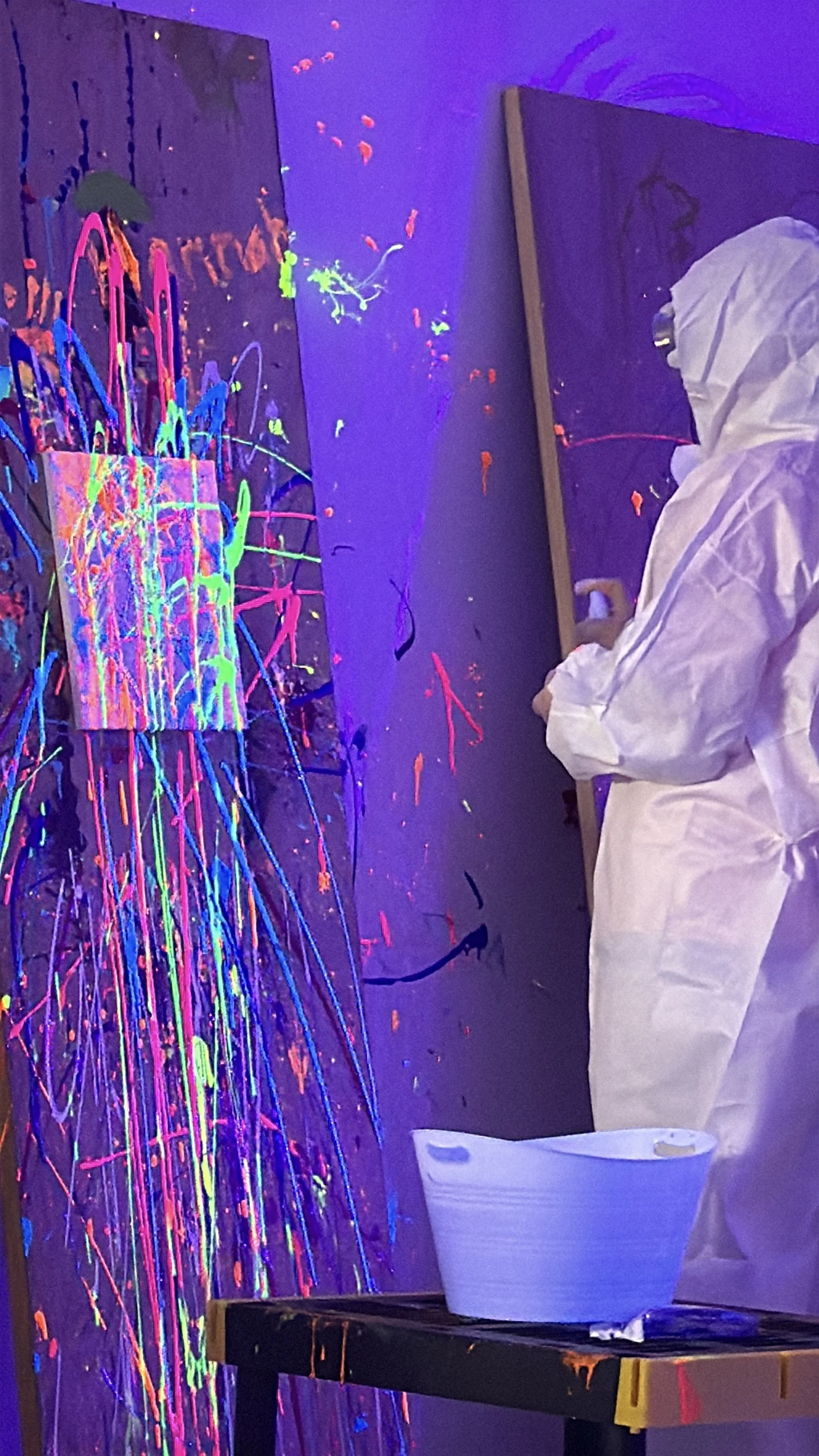 Enjoy a 30-minute session during our open-studio hours — everything you need for a glowing, splatter-filled experience is included!